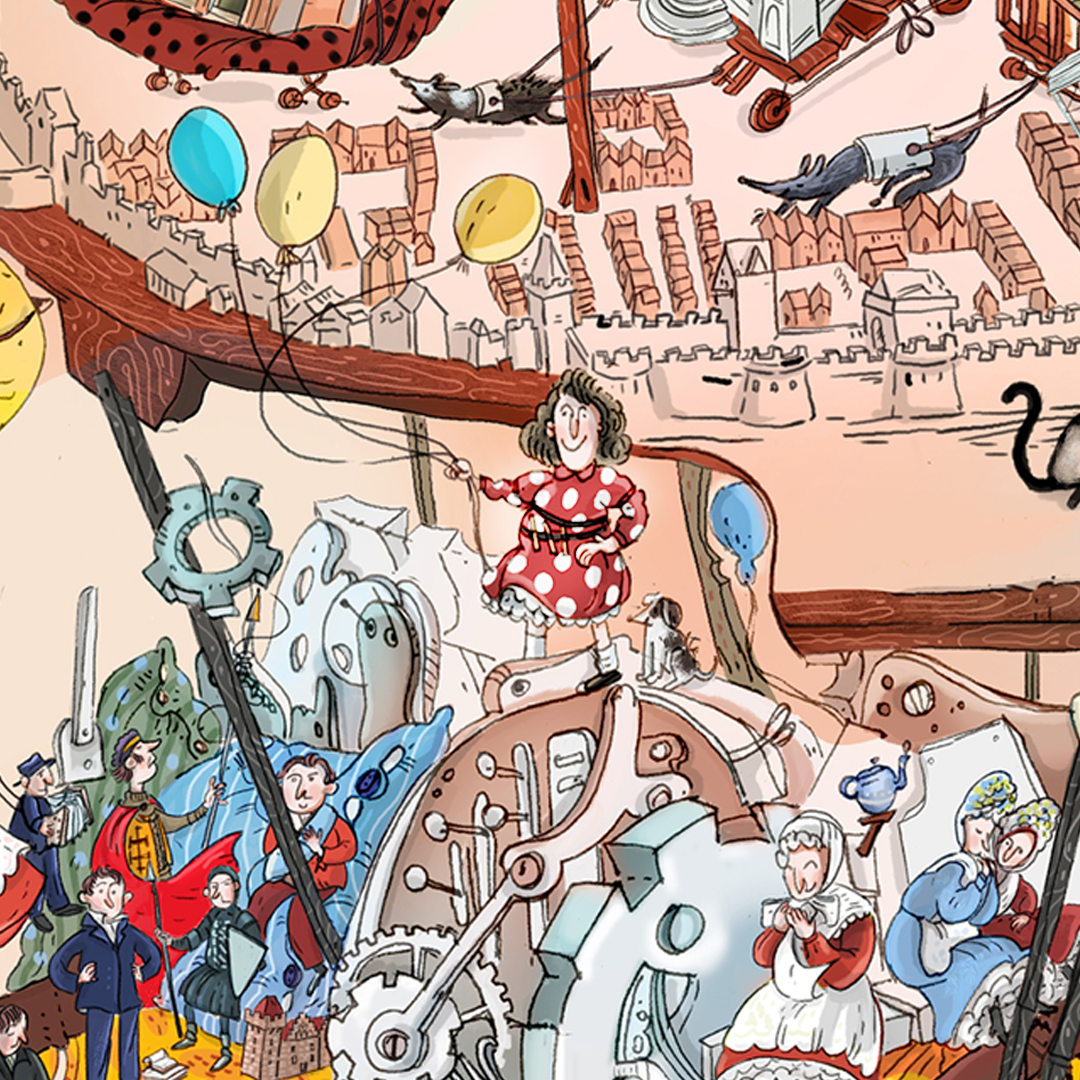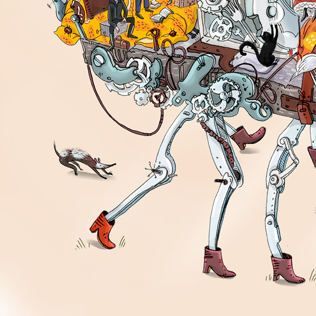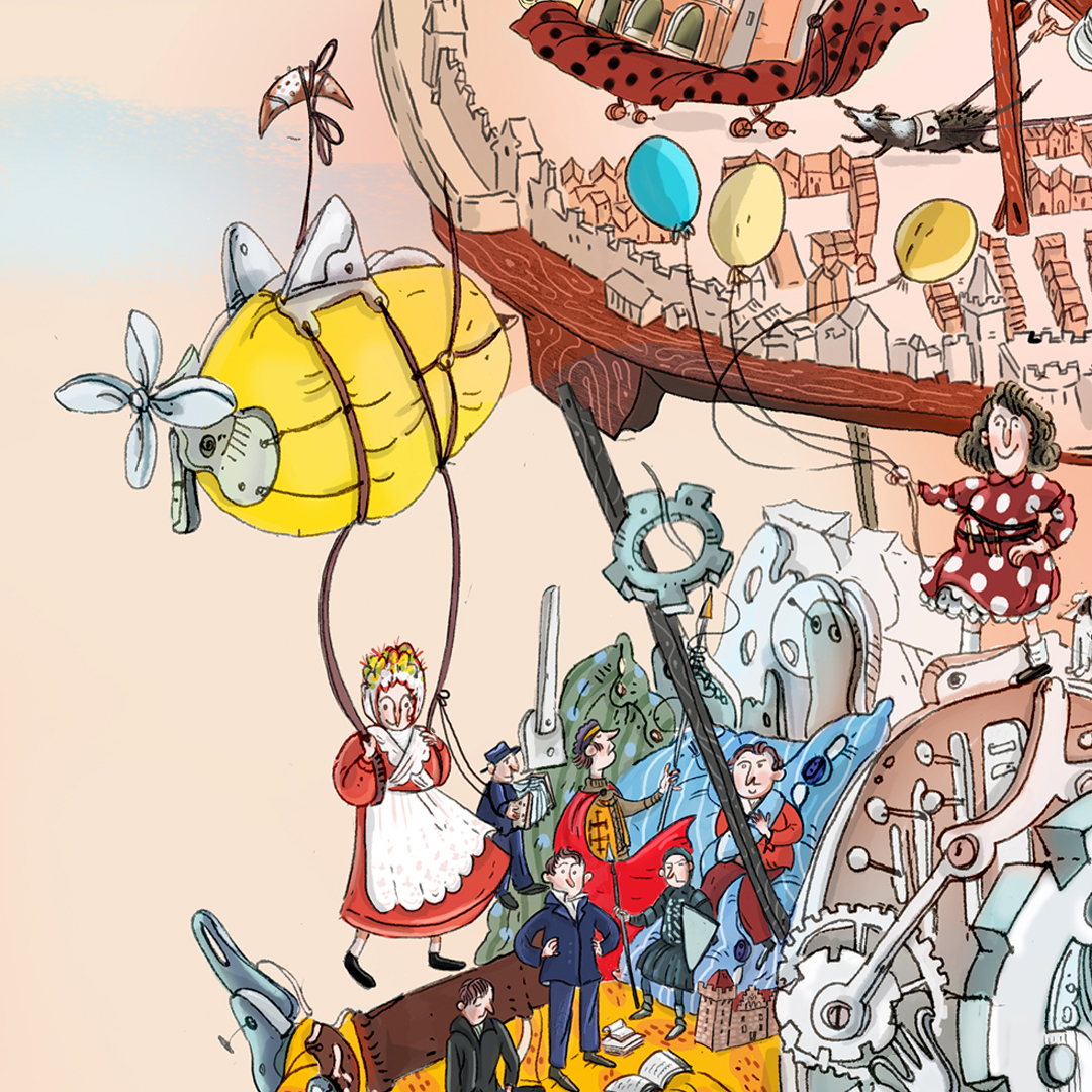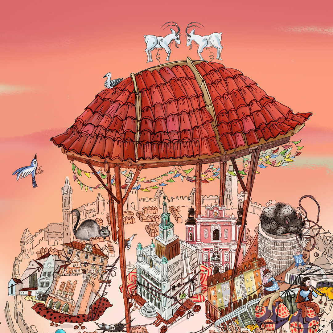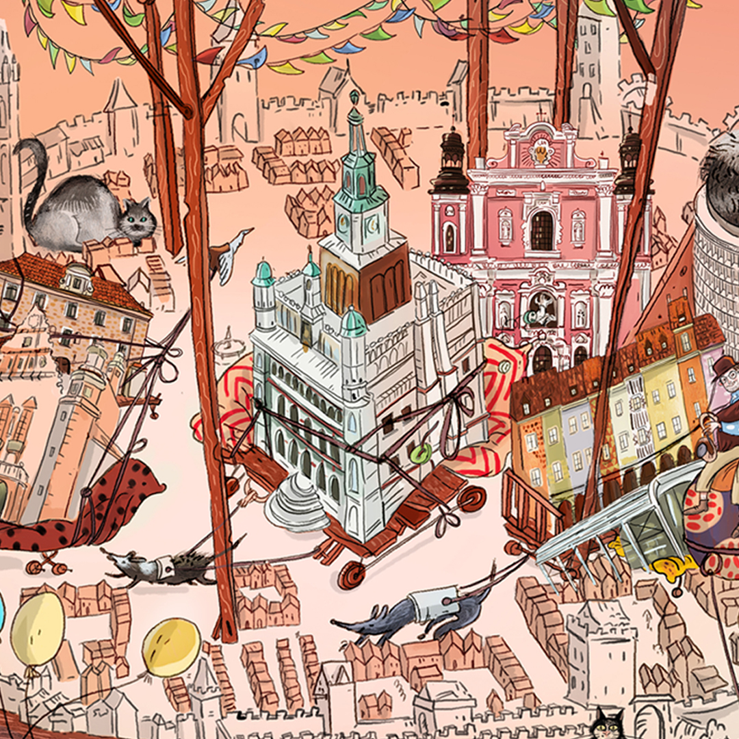 Design of a mural depicting elements associated with the city of Poznań. Among the elements of the machine, both architectural monuments of the city and modern buildings are visible. The project also shows local costumes, musicians, important historical figures, a local football team, characteristic dishes and the inhabitants of the city themselves. The mural was commissioned by the local information portal Codzienny Poznań.